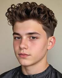 The curly taper fade is one of the most popular choices among teen boys. It blends clean, short sides with longer curls on top.