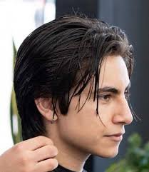 The mid part slick back splits the hair slightly down the center before brushing it back. It gives a more casual, youthful look that’s trending among teen boys right now.