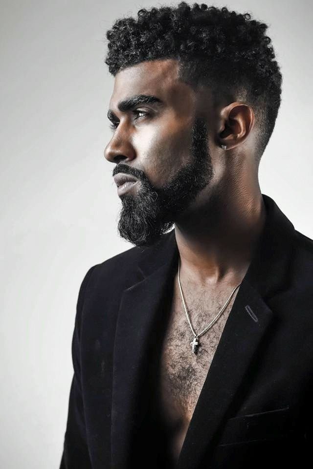 This one’s poetry in motion, man. The temple fade afro and defined chin beard—it’s like Miles Davis and Kendrick Lamar had a grooming baby.