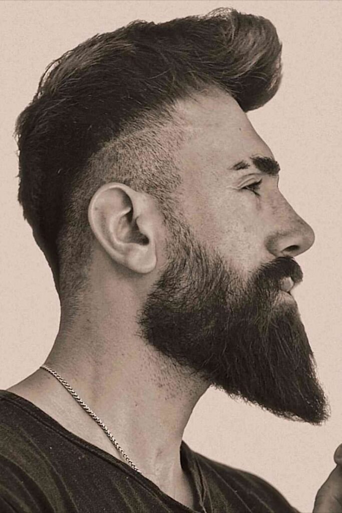 Okay listen, if you want all eyes on you the second you walk in—the pompadour with a faded beard is it.