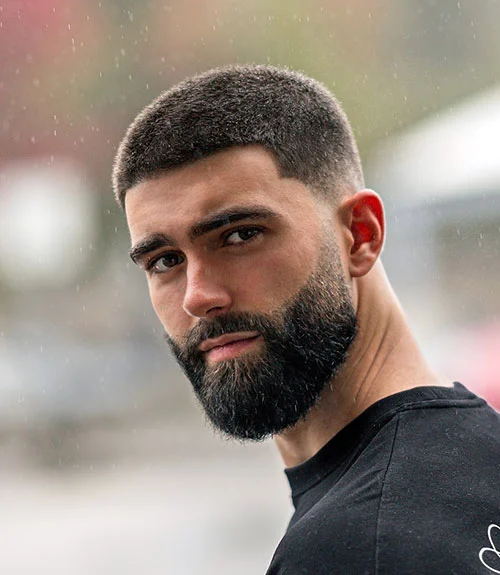 Let’s keep it simple—but lethal. The buzz cut with a thick full beard is like the navy SEAL of grooming styles: minimal, disciplined, and deadly good-looking.